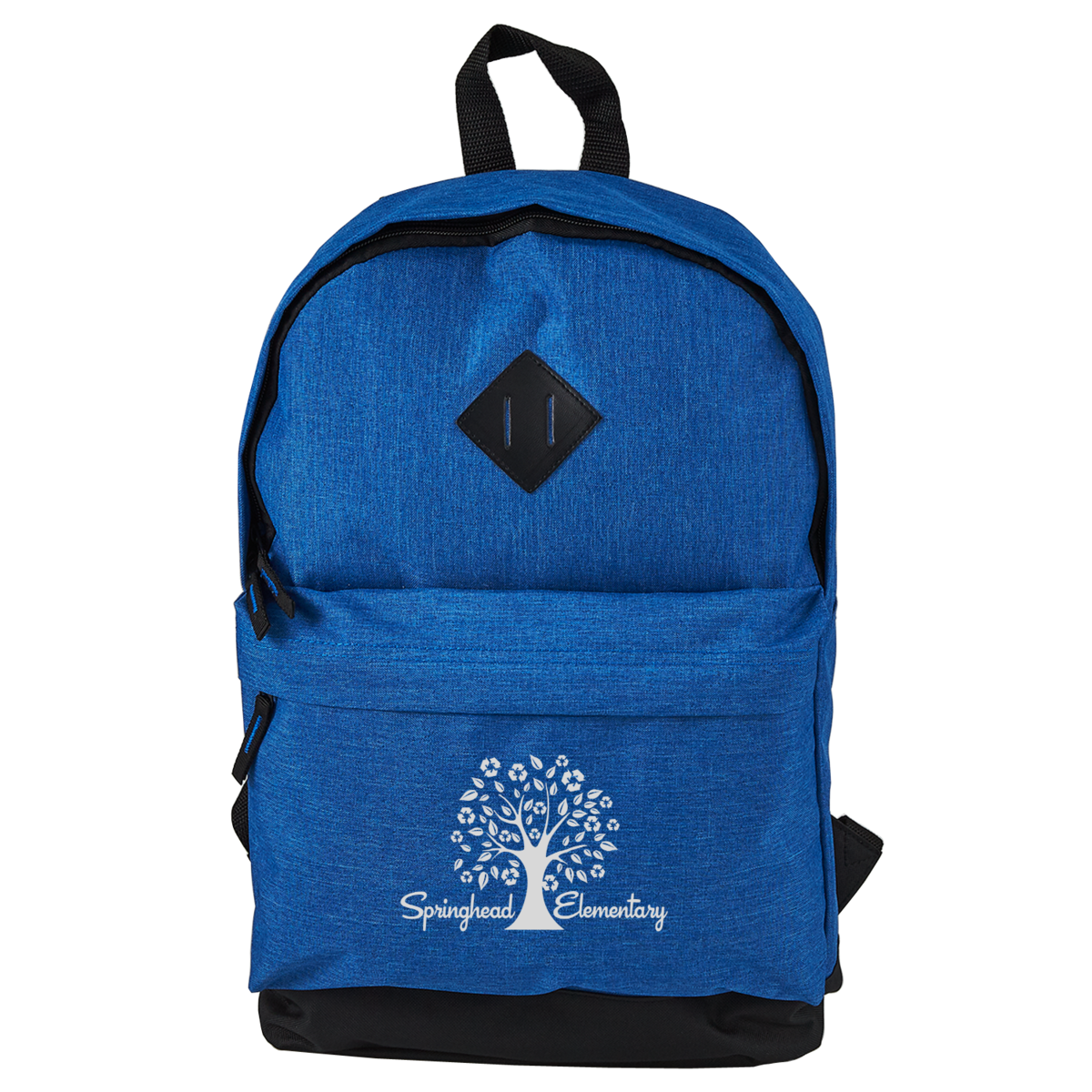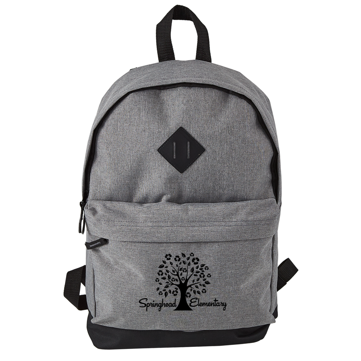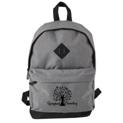 This 300D Heathered Polyester Backpack features adjustable padded shoulder straps, leatherette lash tag, a double zippered mesh compartment with front zippered pocket, and a durable top carry handle. Recommended weight tolerance is 25lbs. The perfect backpack for school, sports, hiking, camping, and general daily use.